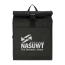 Quality R-Pet cooler backpack with adjustable shoulder straps, carry handle, front pocket, side pocket and internal PEVA lining. The bag has a 'ripper' top closing with extra press studs in the roll top style secured by a buckle.