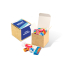 An Eco Kraft Cube filled with a selection of Retro Sweets. Branded with a full colour paper label to three sides of the cube.